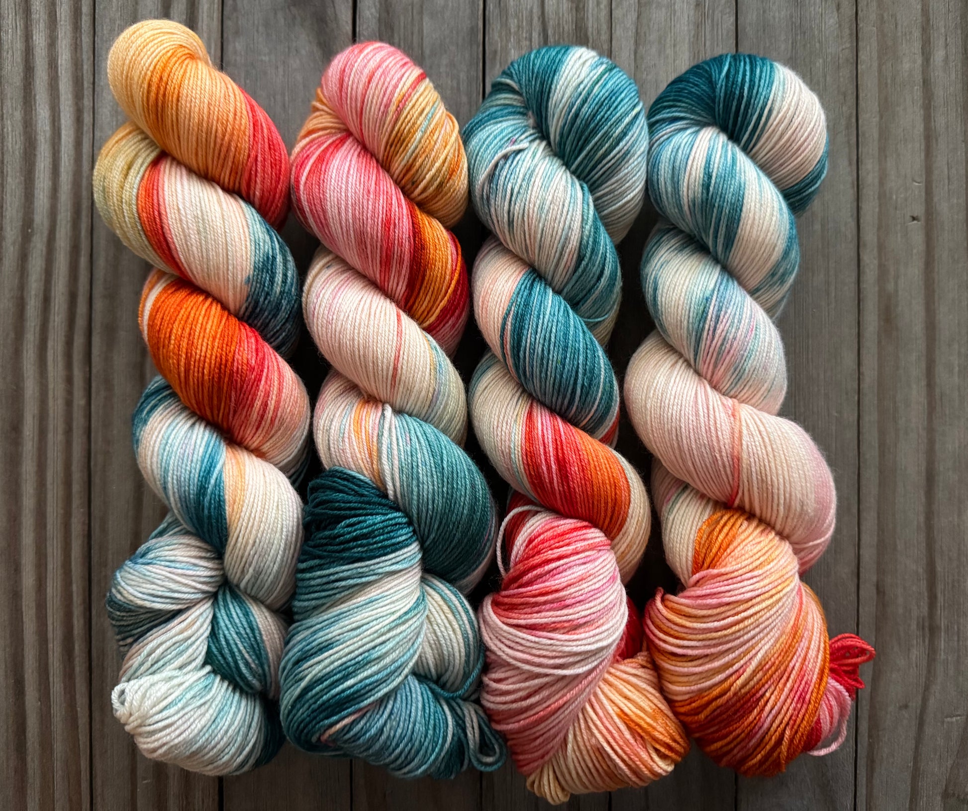 This yarn was dyed using professional acid dyes. Although I rinse my skeins well, some bleeding may occur. I try my best to portray colors accurately. Colors on computer monitors and mobile devices may vary.